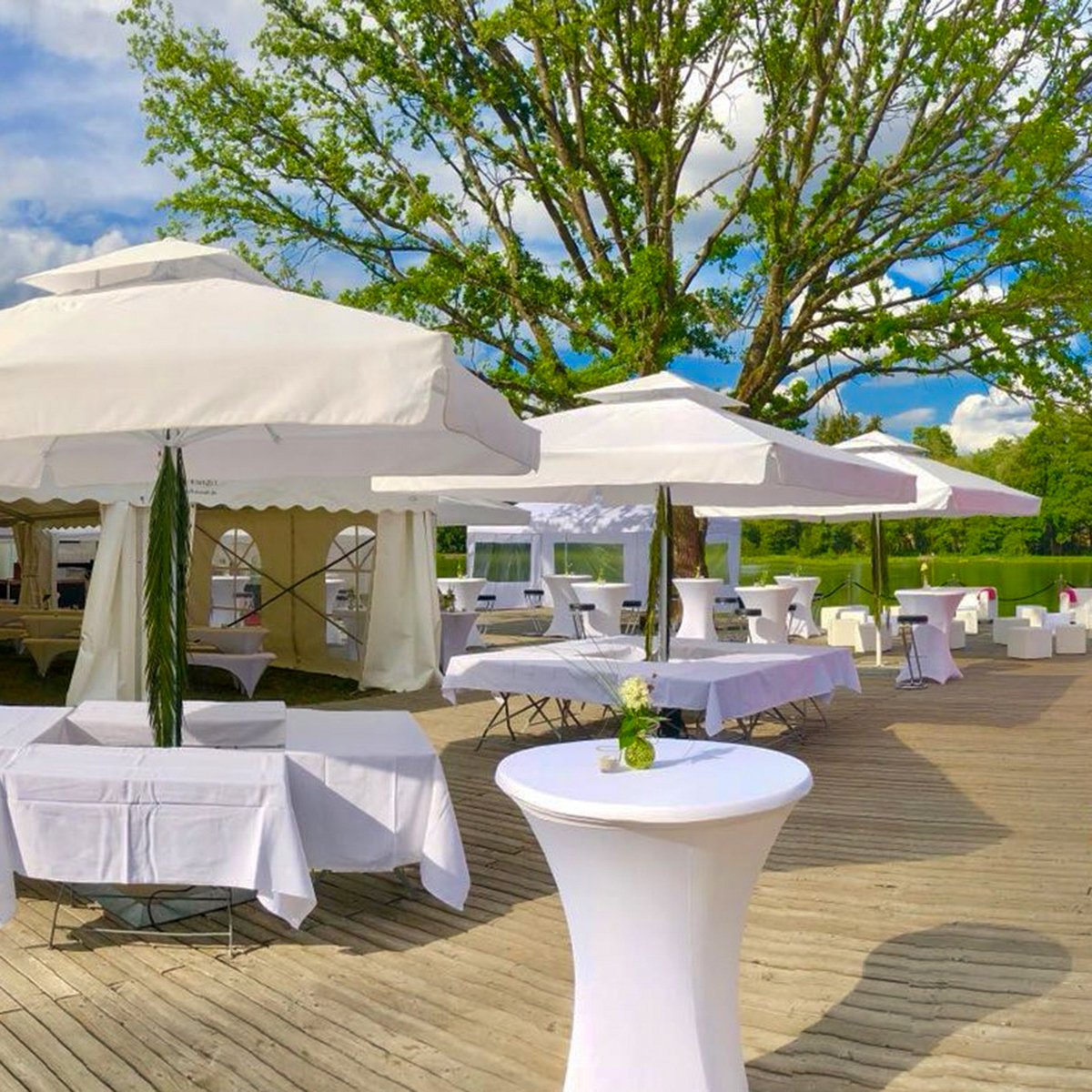 • Vollständige Bestuhlung mit runden oder eckigen Tischen und Festzeltgarnituren